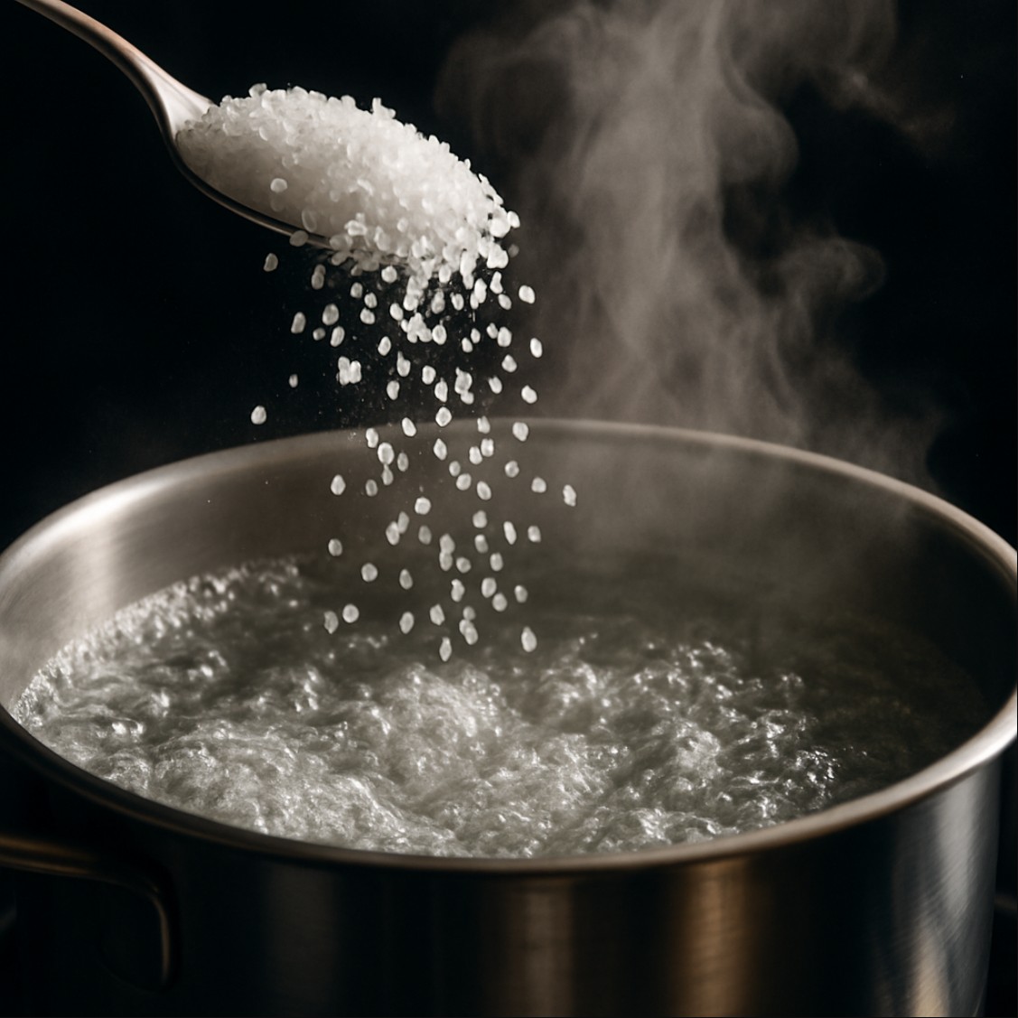 파스타를 삶을 때 흔히 소금을 넣어요. 이때 많은 분들이 “소금을 넣으면 끓는점이 올라가서 면이 더 빨리 익는다”라고 알고 있는데, 실제로는 끓는점 상승이 1~2℃ 정도에 그치는 경우가 많아서 조리 시간에 주는 영향은 크지 않아요. 소금을 넣는 진짜 이유는 맛을 잘 배게 하고, 면의 전분이 너무 퍼지지 않도록 돕는 역할이 더 크다고 볼 수 있어요.