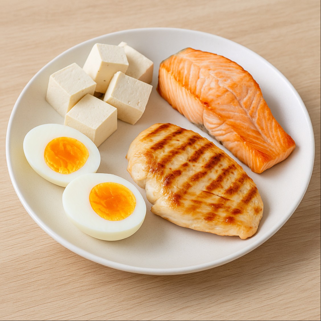 - 닭가슴살, 달걀, 두부, 흰살생선