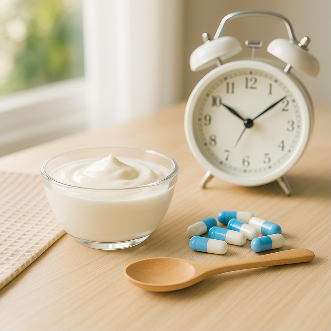 A. 최소 2시간 이상 간격을 두세요. 효모 기반 유산균은 항생제 영향이 적지만, 간격을 두면 안전합니다.